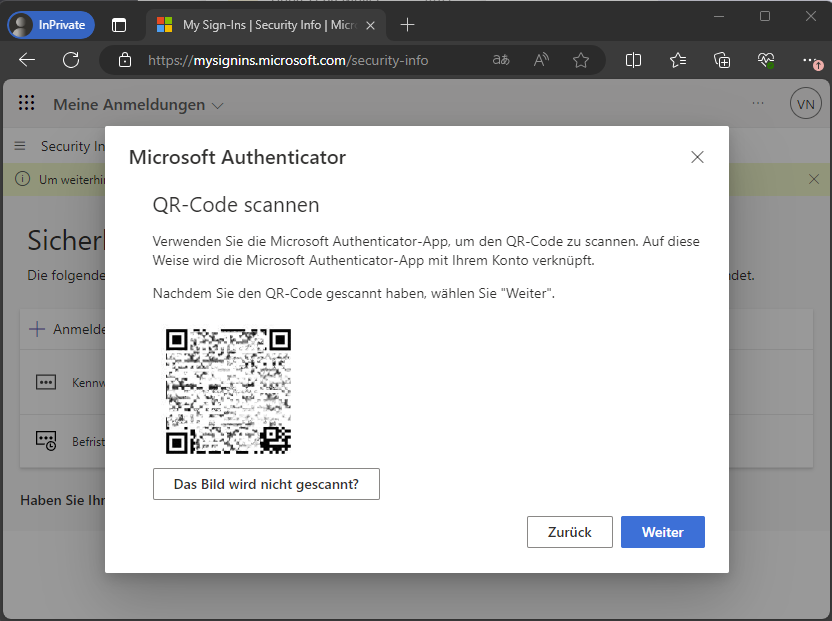 8.) fahren Sie nun bei Schritt 5 auf Ihrem PC weiter fort - ein QR-Code wird angezeigt - scannen Sie den QR-Code mit der Authenticator-App