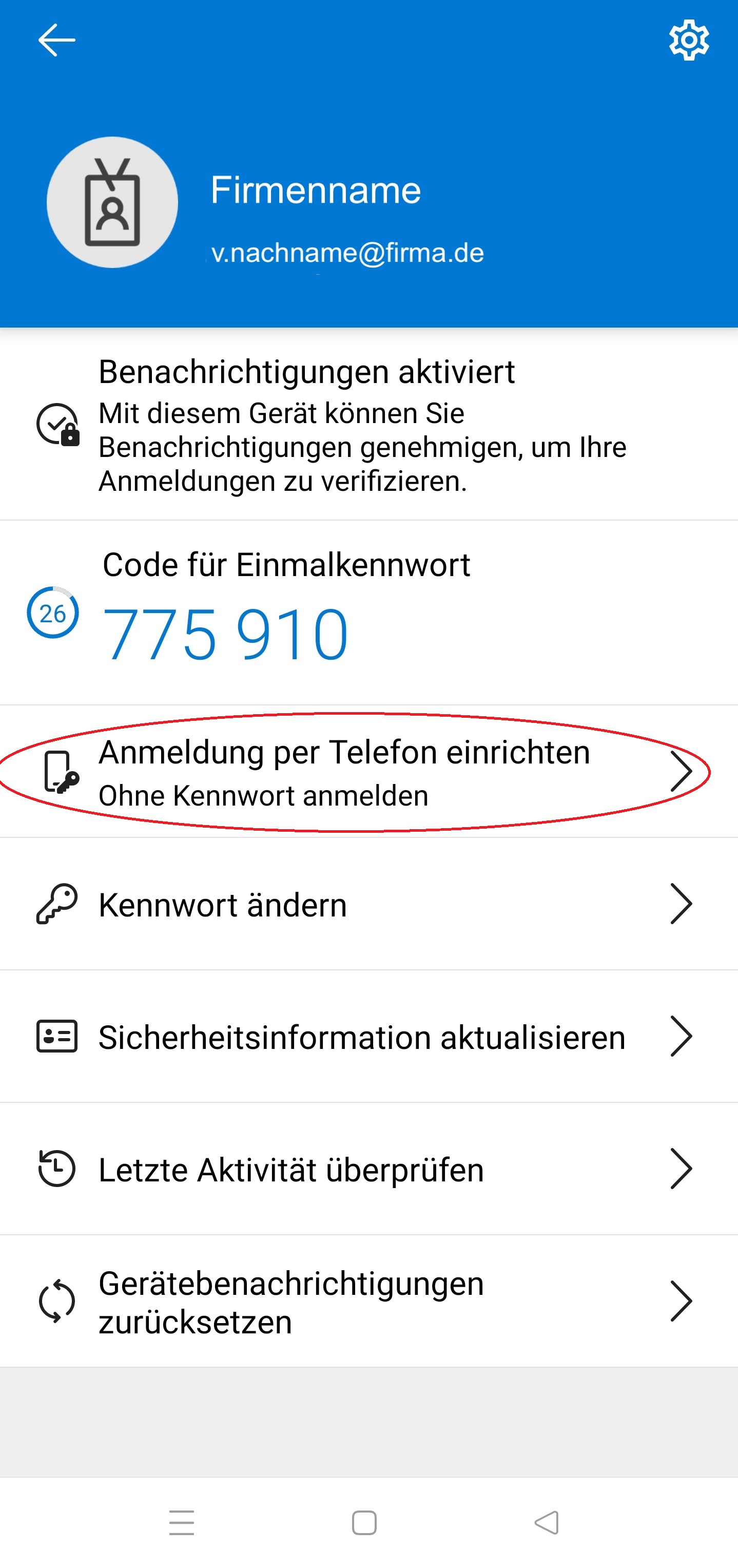 12.) Aktivieren Sie das Kennwortlose anmelden per Smartphone